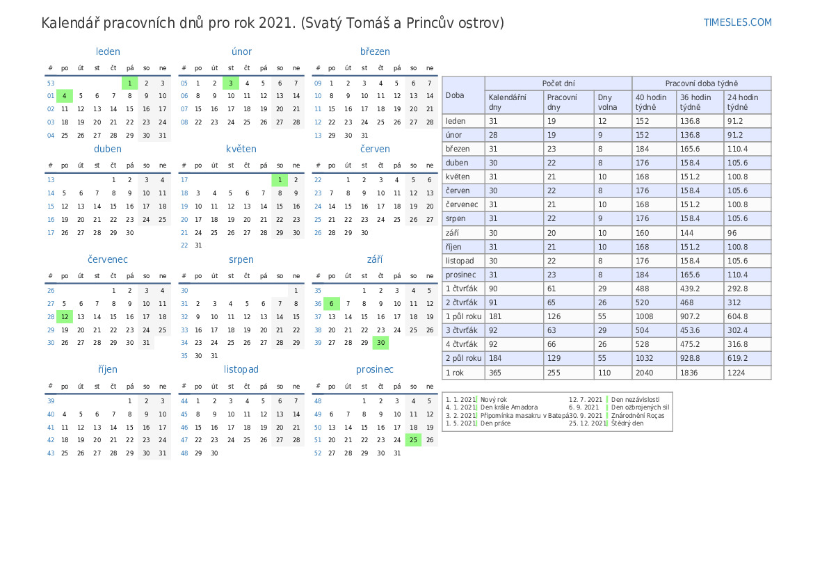 Stáhněte si a vytiskněte si kalendář pracovních dnů ve formátu PDF se svátky a víkendy na 3. čtvrtletí roku 2021 pro Svatý Tomáš a Princův ostrov
