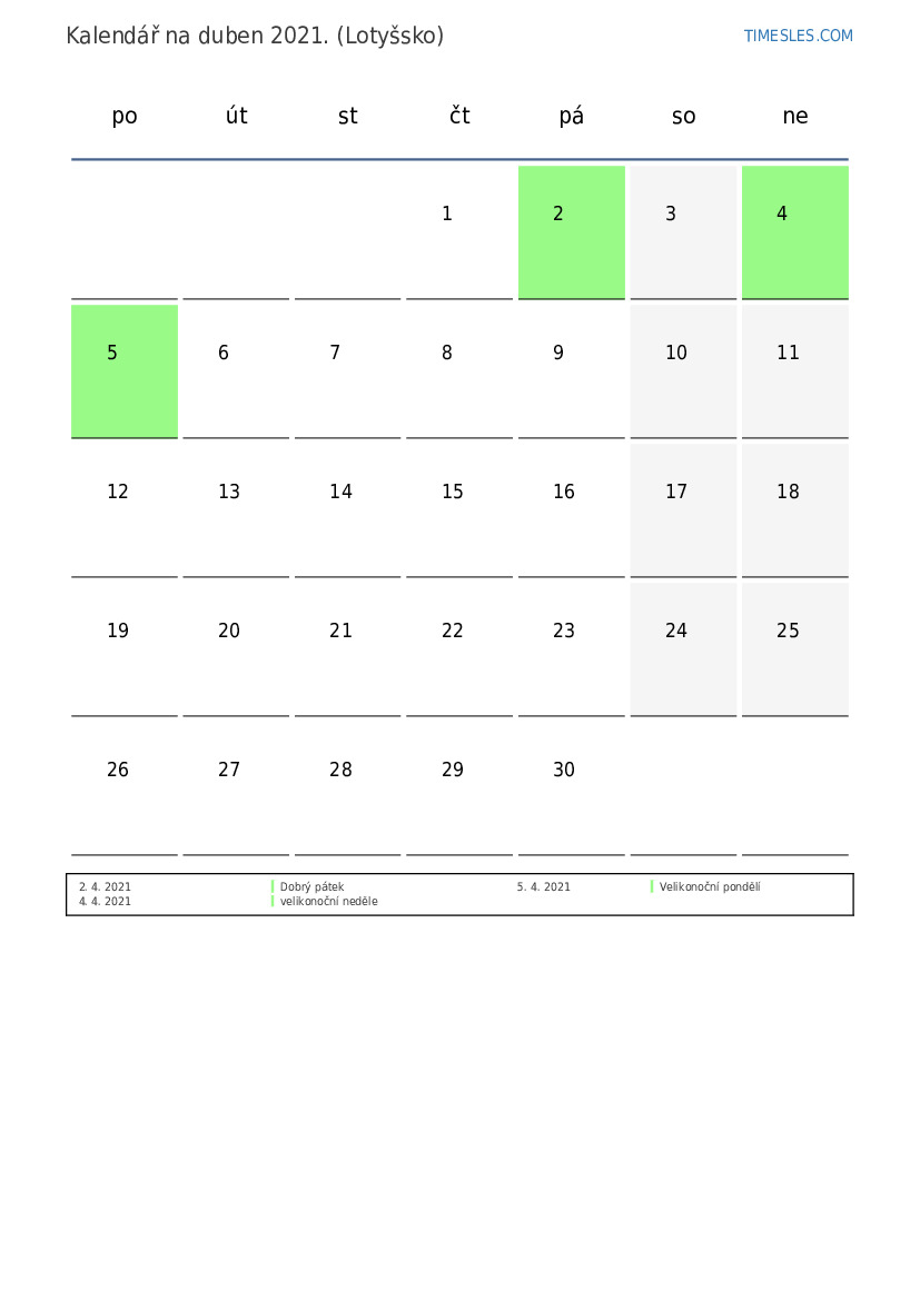 duben 2021 kalendář pro Lotyšsko