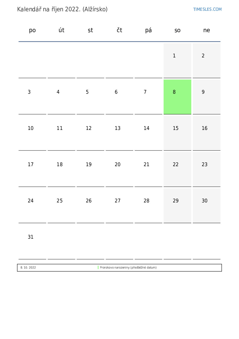 8. 10. 2022 Prorokovo narozeniny (předběžné datum)