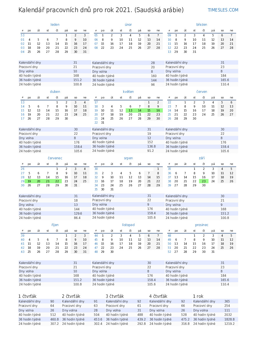 Pracovní dny v květen 2021. v Saúdské Arábii je v květen 2021 4 svátky a dny volna.