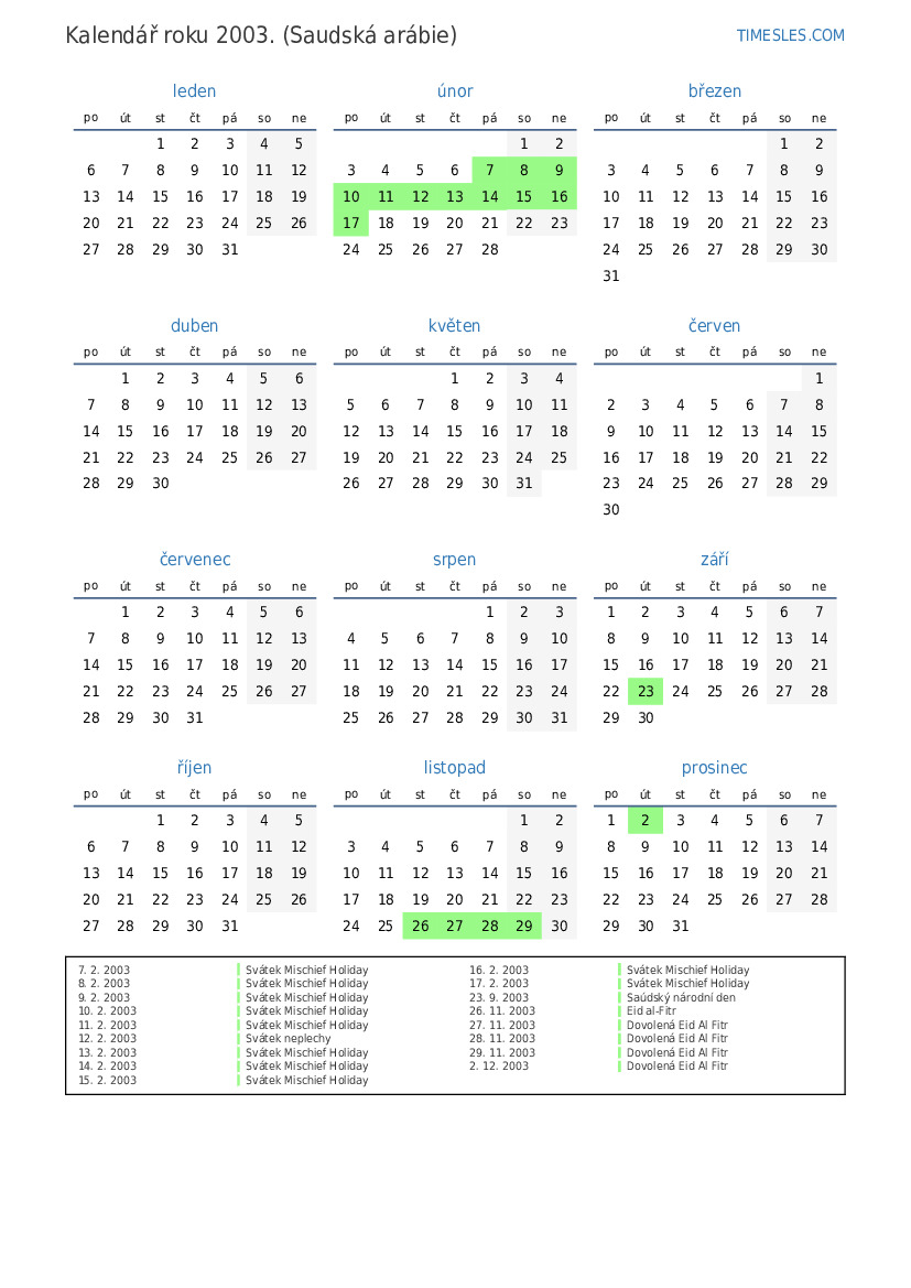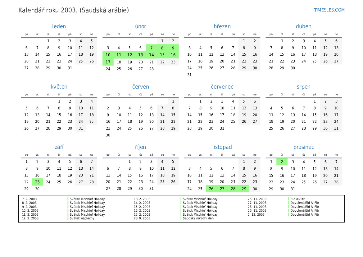 1. 12. 2003 Eid al-Fitr Holiday (pouze ve veřejném sektoru)