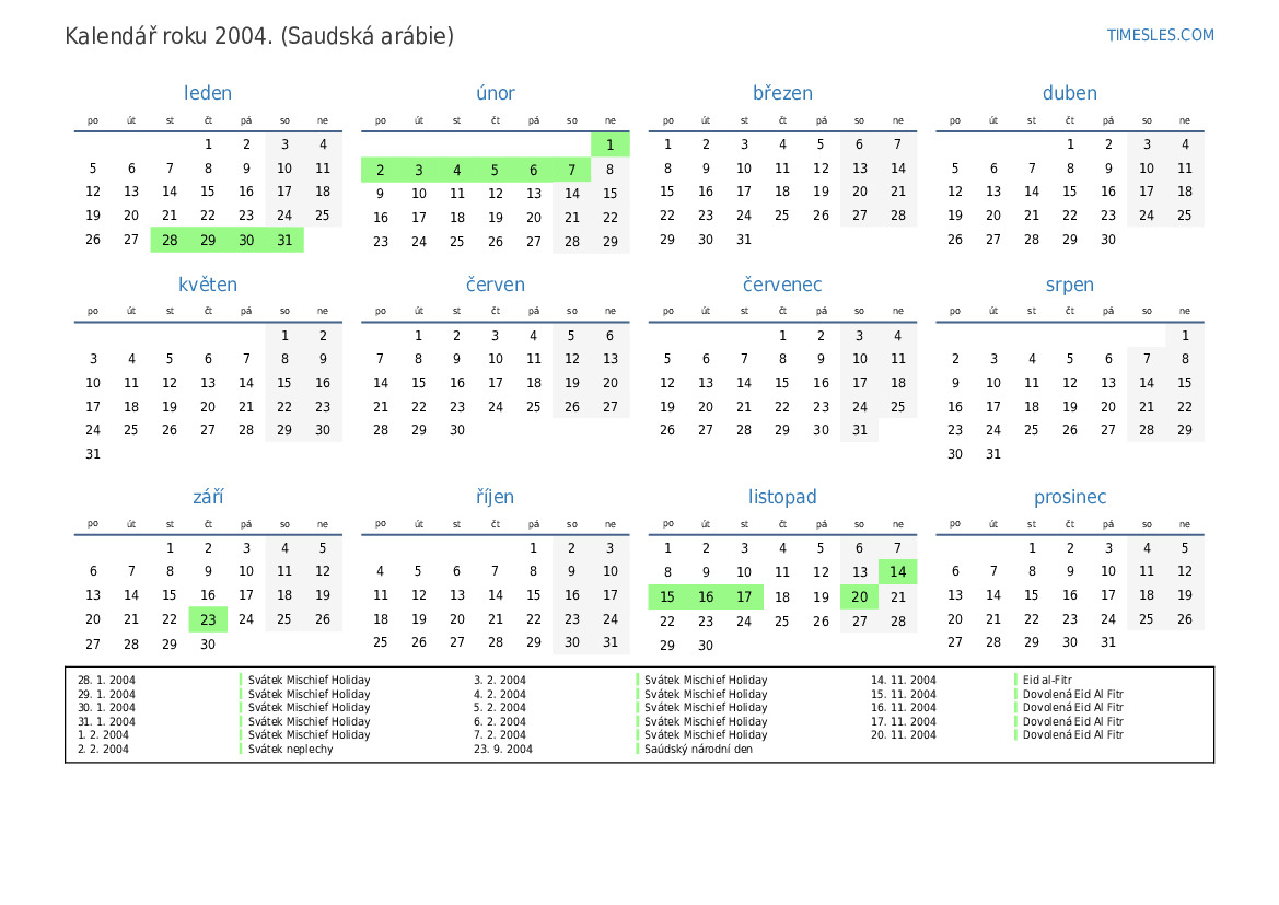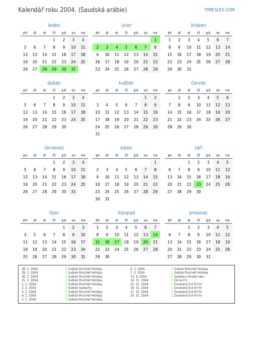 18. 11. 2004 Eid al-Fitr Holiday (pouze ve veřejném sektoru)
