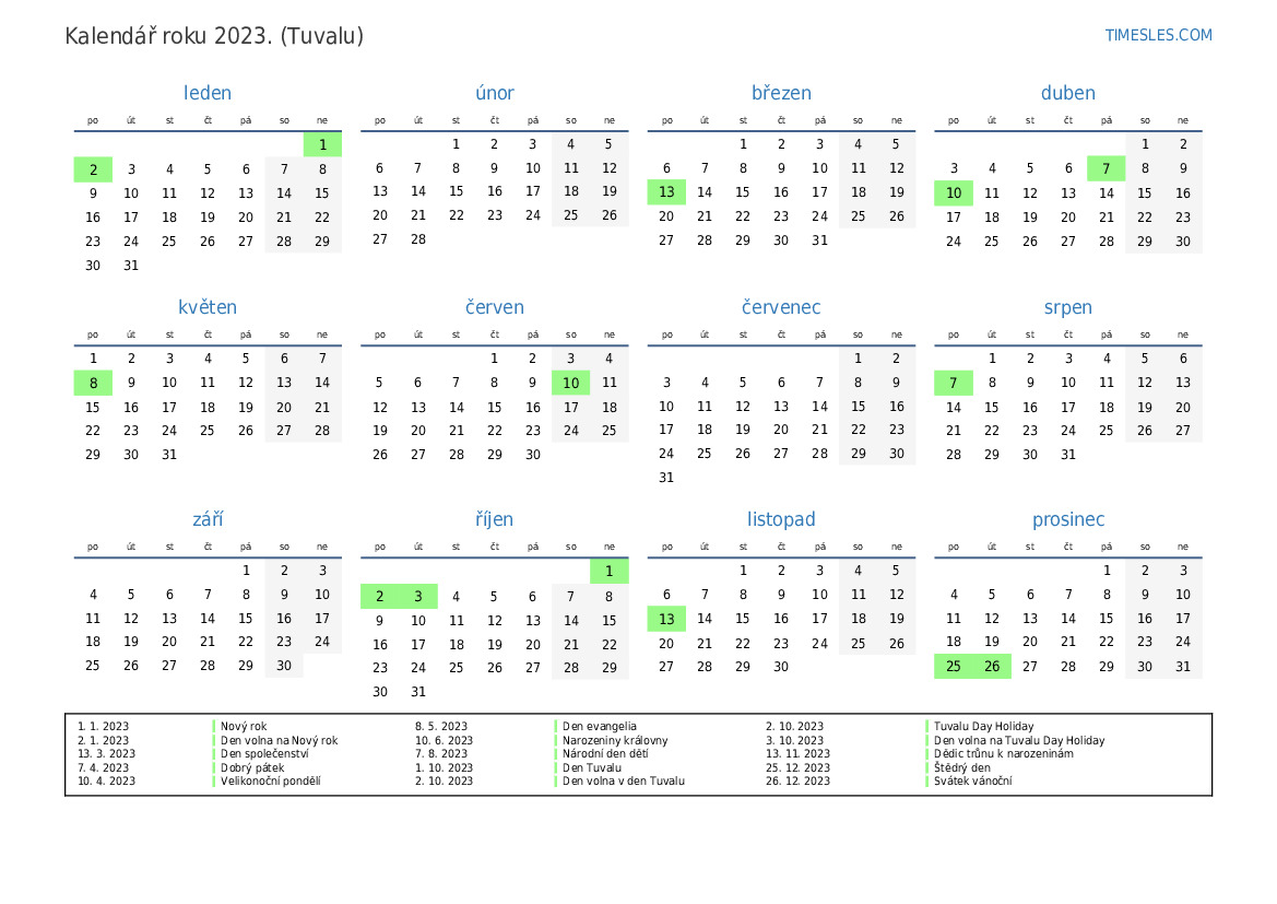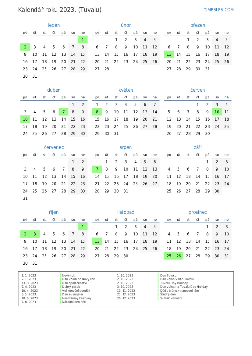 3. 10. 2023 Den volna na Tuvalu Day Holiday