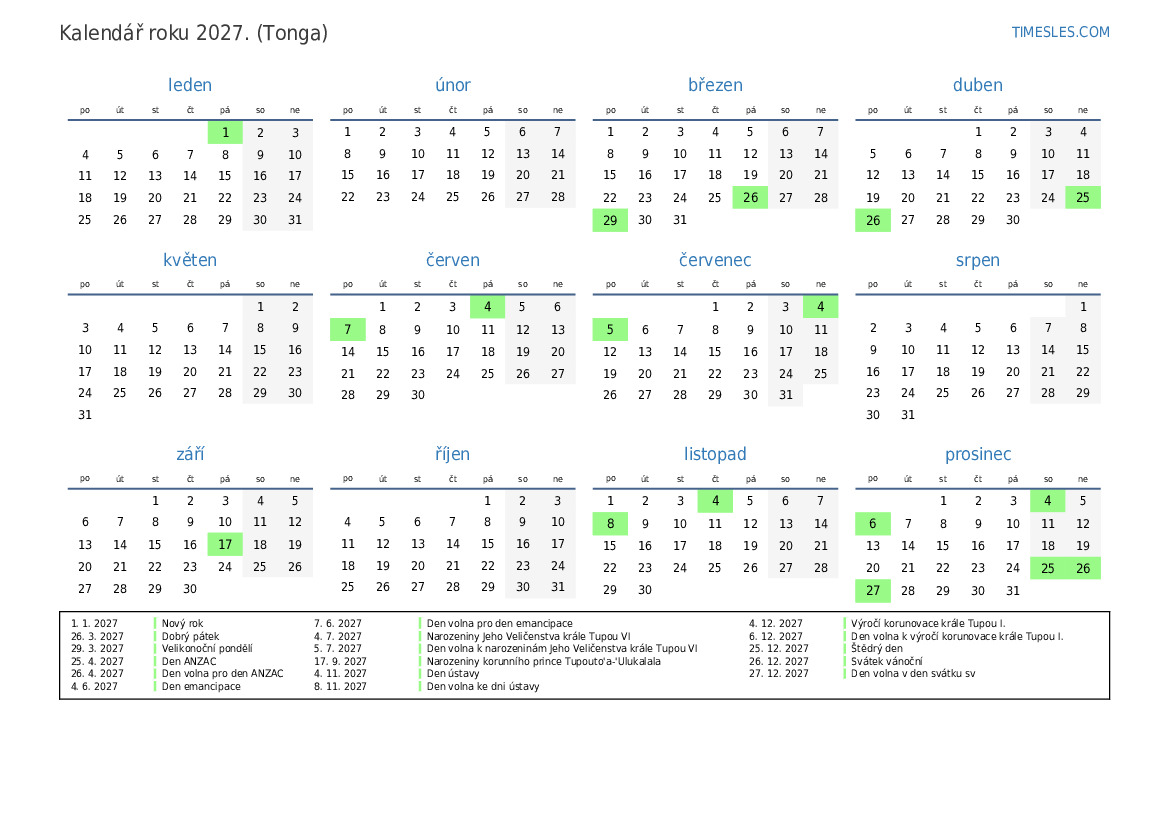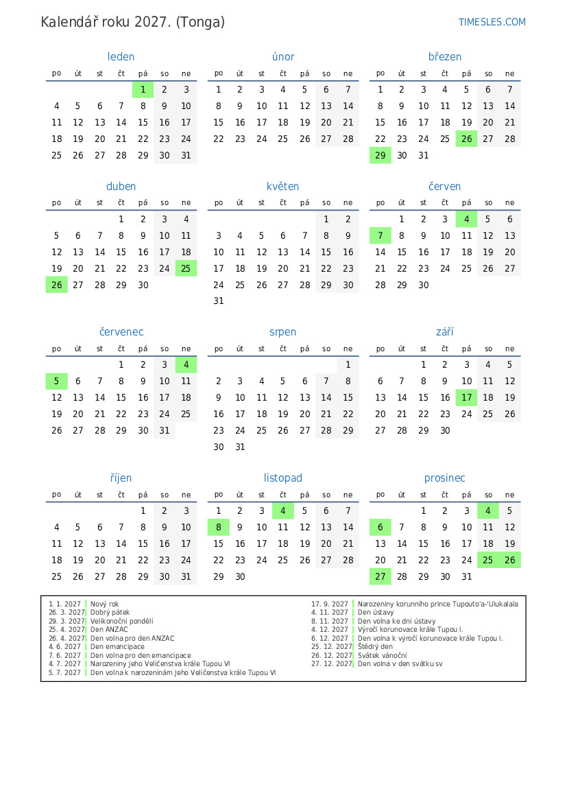 6. 12. 2027 Den volna k výročí korunovace krále Tupou I.