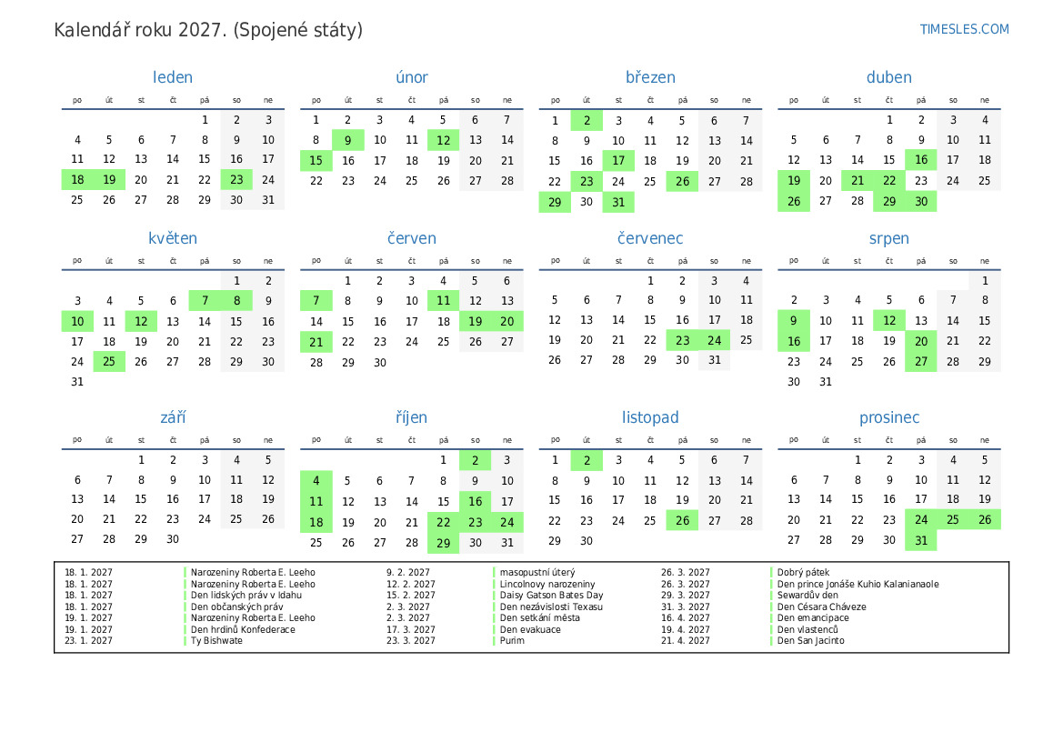 26. 11. 2027 Státní svátek