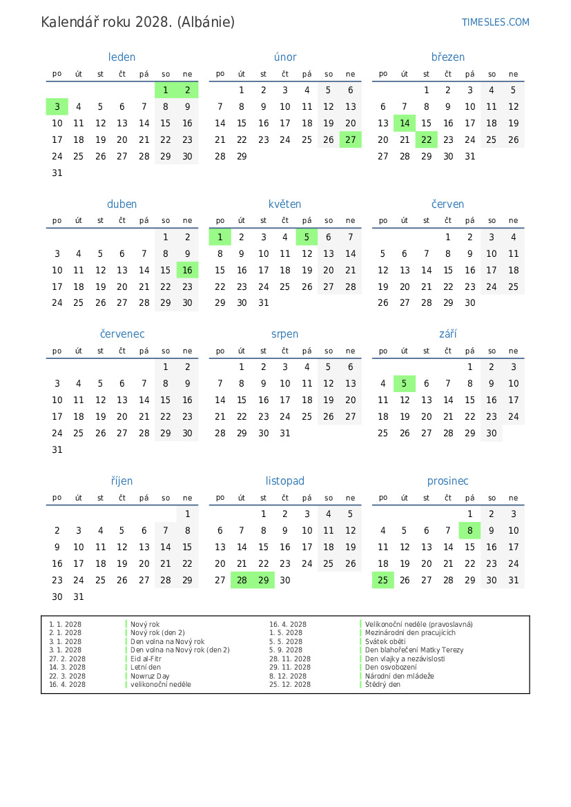 17. 4. 2028 Velikonoční pondělí (ortodoxní)