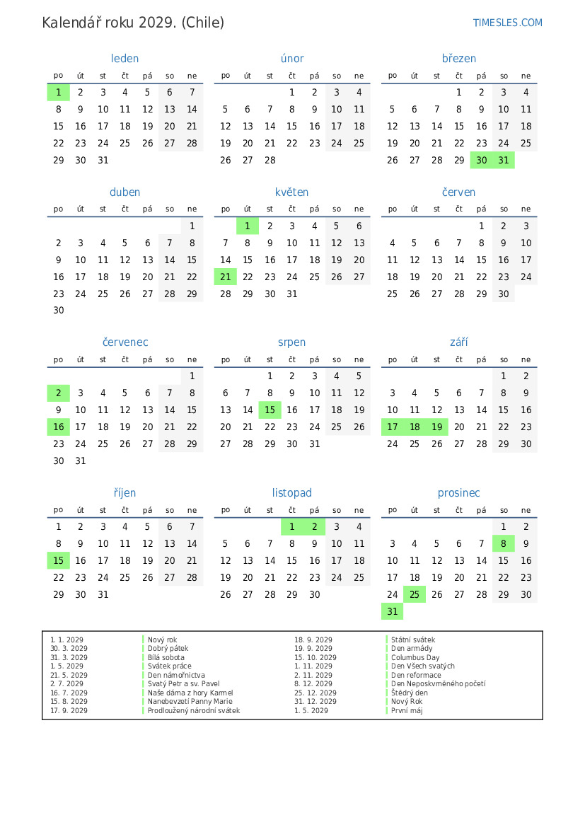 18. 9. 2029 Státní svátek