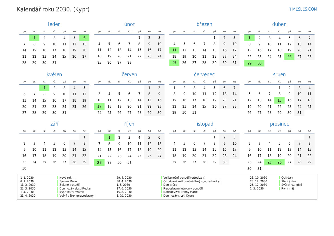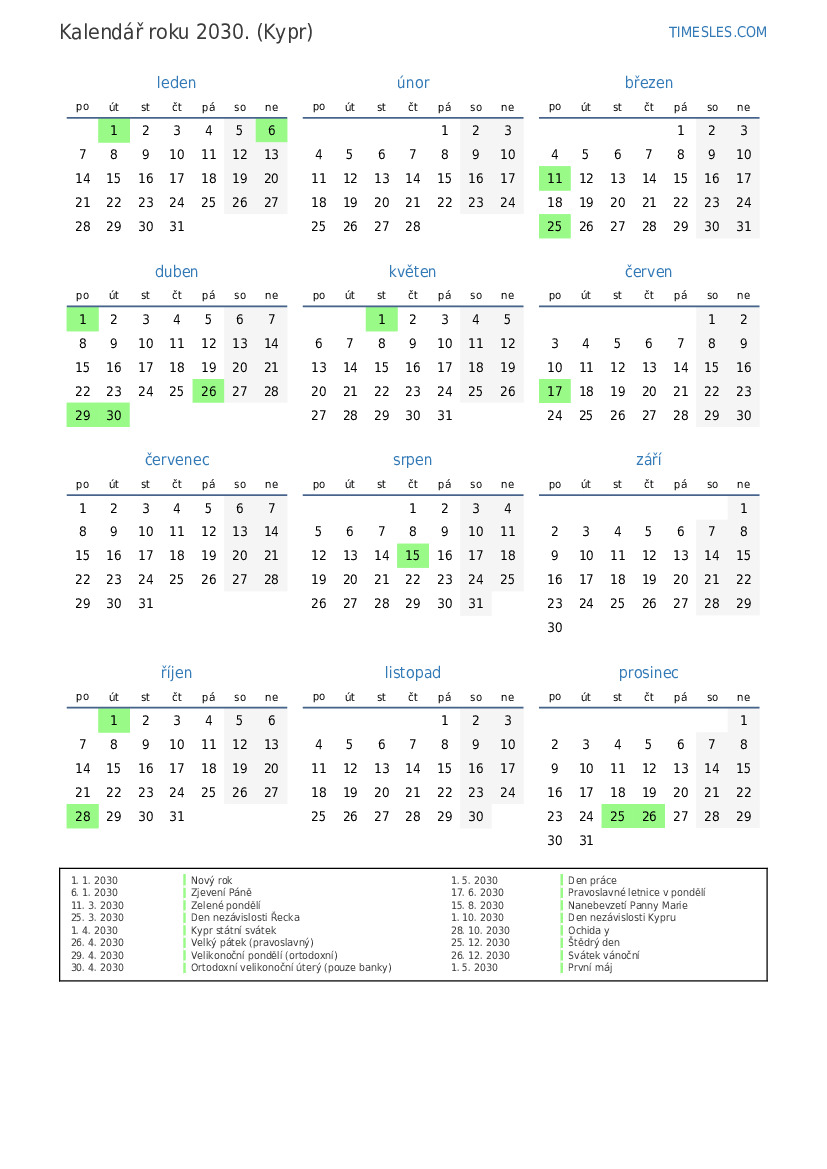30. 4. 2030 Ortodoxní velikonoční úterý (pouze banky)