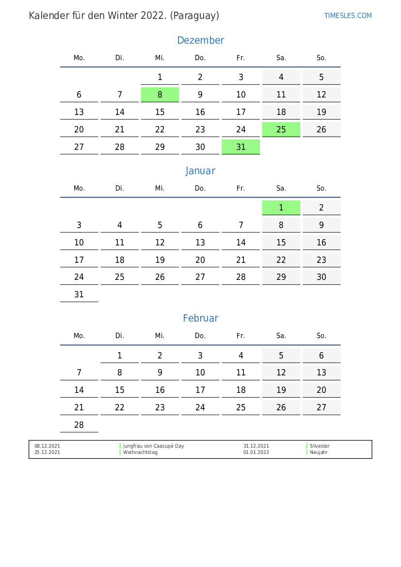 Im Herbst 2022 gibt es in Paraguay Im Herbst. Der Herbst 2022 beginnt am Donnerstag und endet am Mittwoch.