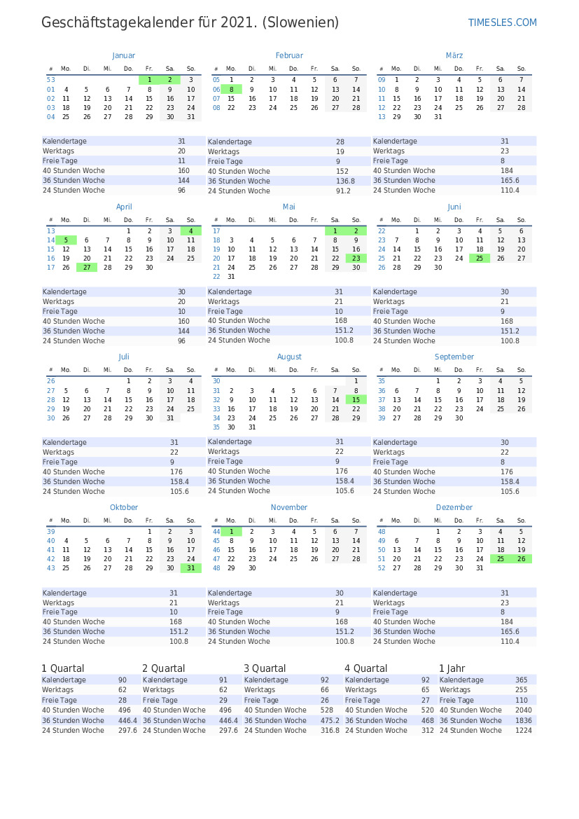 Arbeitstage für Juli 2021. Für Juli 2021 gibt es in Slowenien 0 Feiertage und freie Tage.