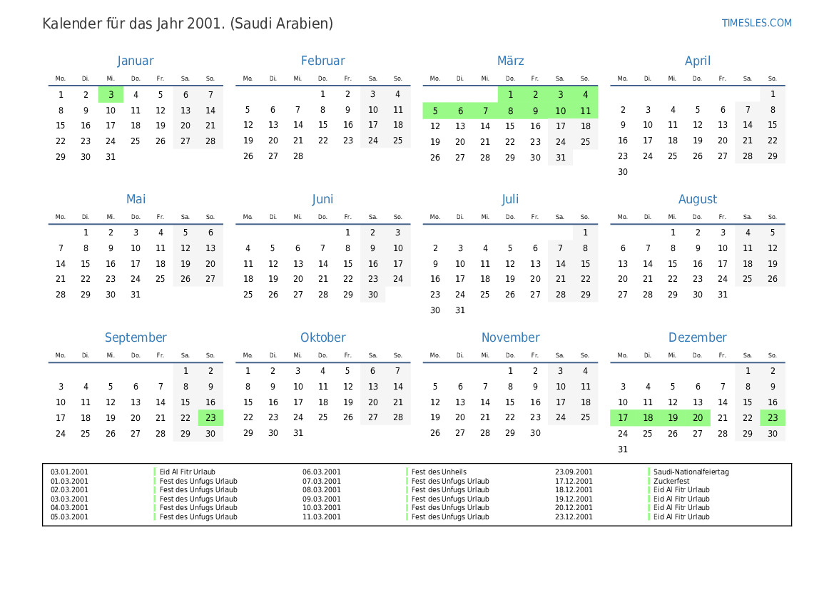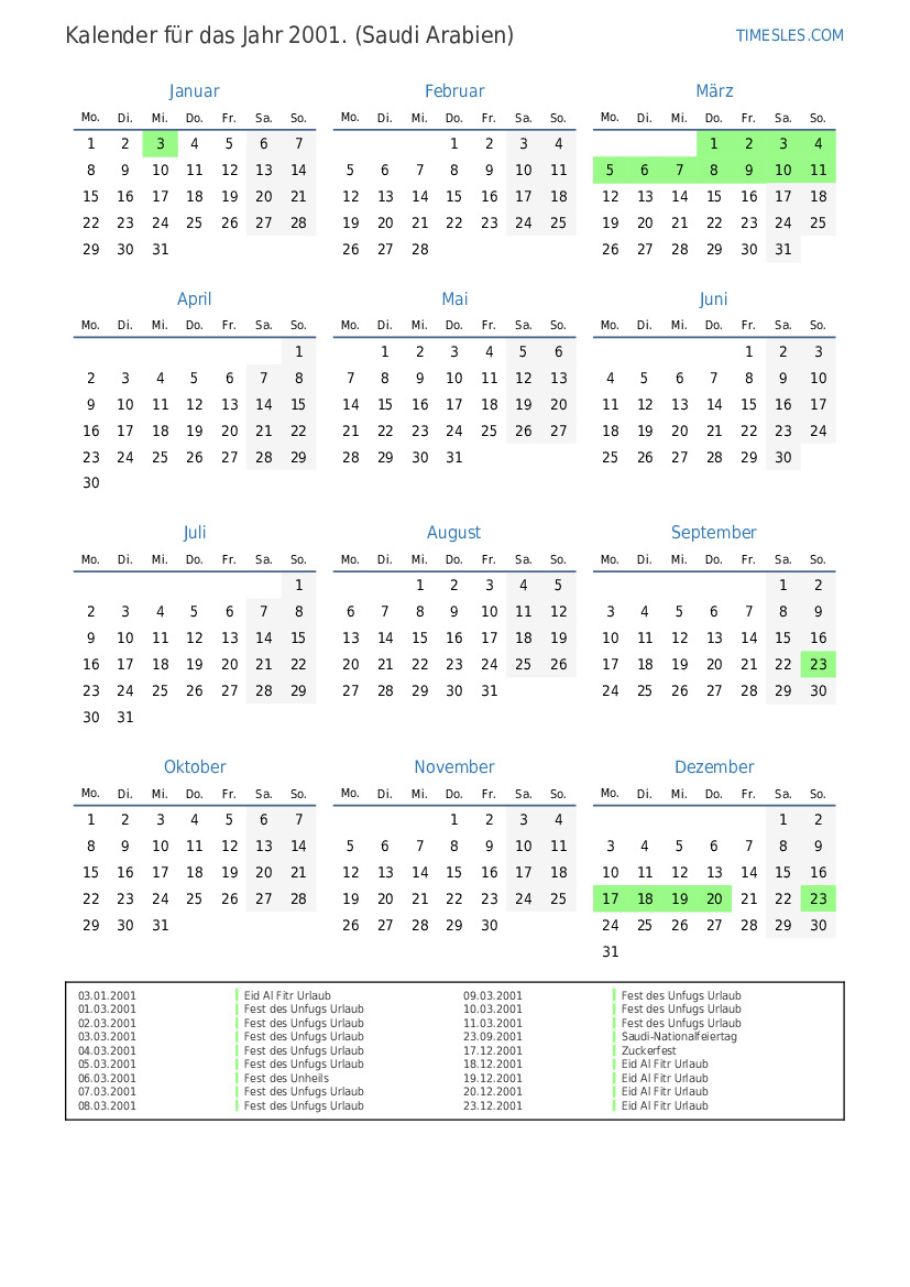 01.01.2001 Eid al-Fitr Holiday (nur öffentlicher Sektor)