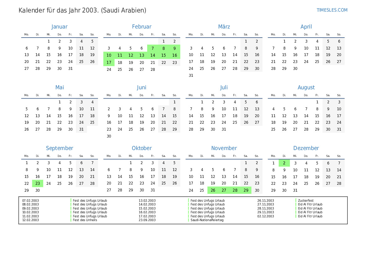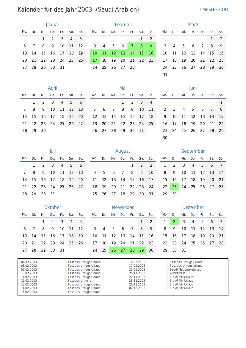 01.12.2003 Eid al-Fitr Holiday (nur öffentlicher Sektor)