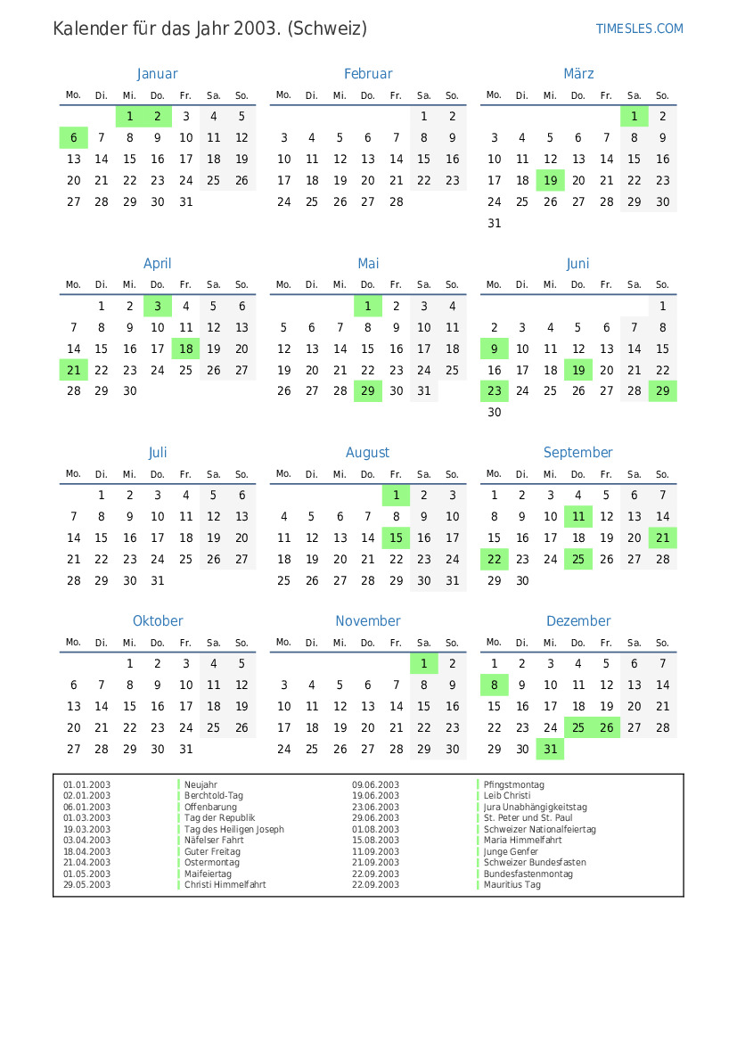 21.09.2003 Schweizer Bundesfasten