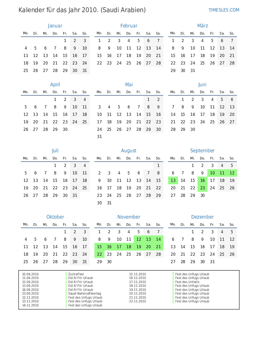 15.09.2010 Eid al-Fitr Holiday (nur öffentlicher Sektor)
