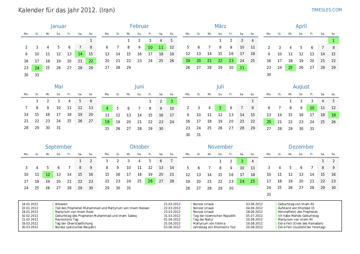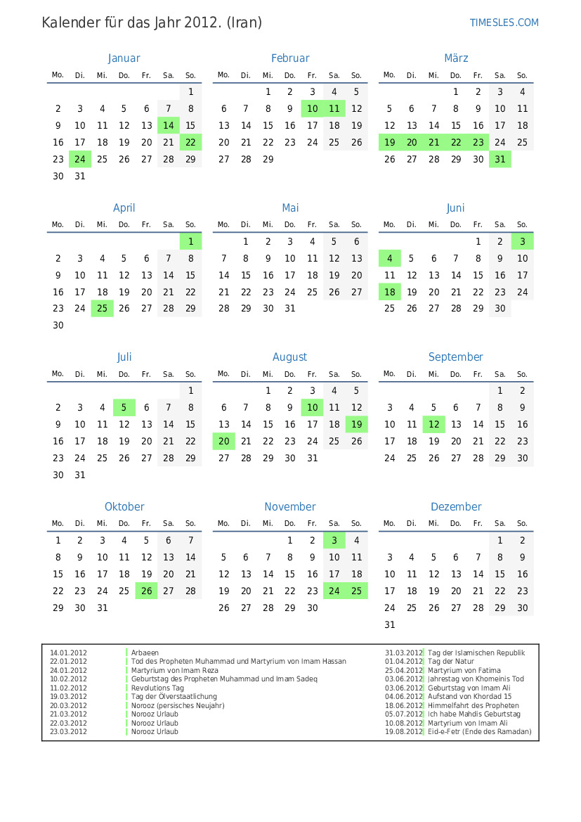 20.08.2012 Eid-e-Fetr (zusätzlicher Feiertag)