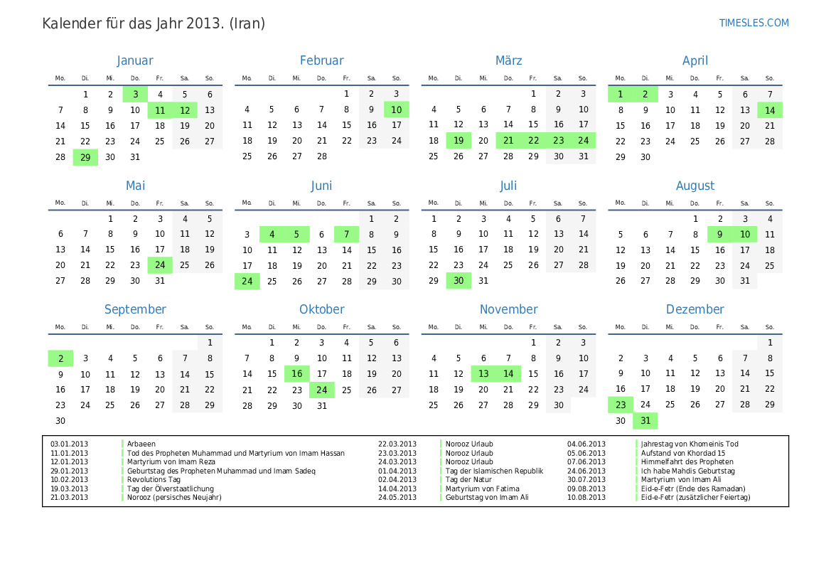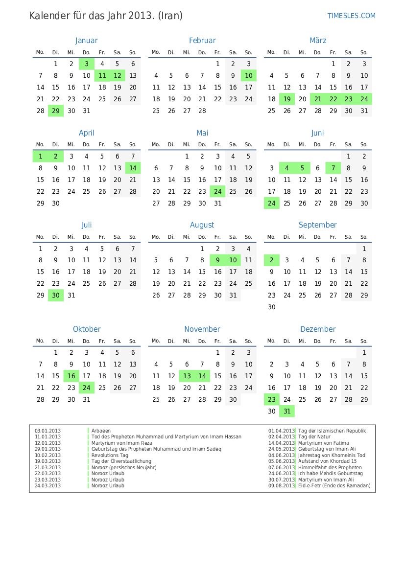 10.08.2013 Eid-e-Fetr (zusätzlicher Feiertag)