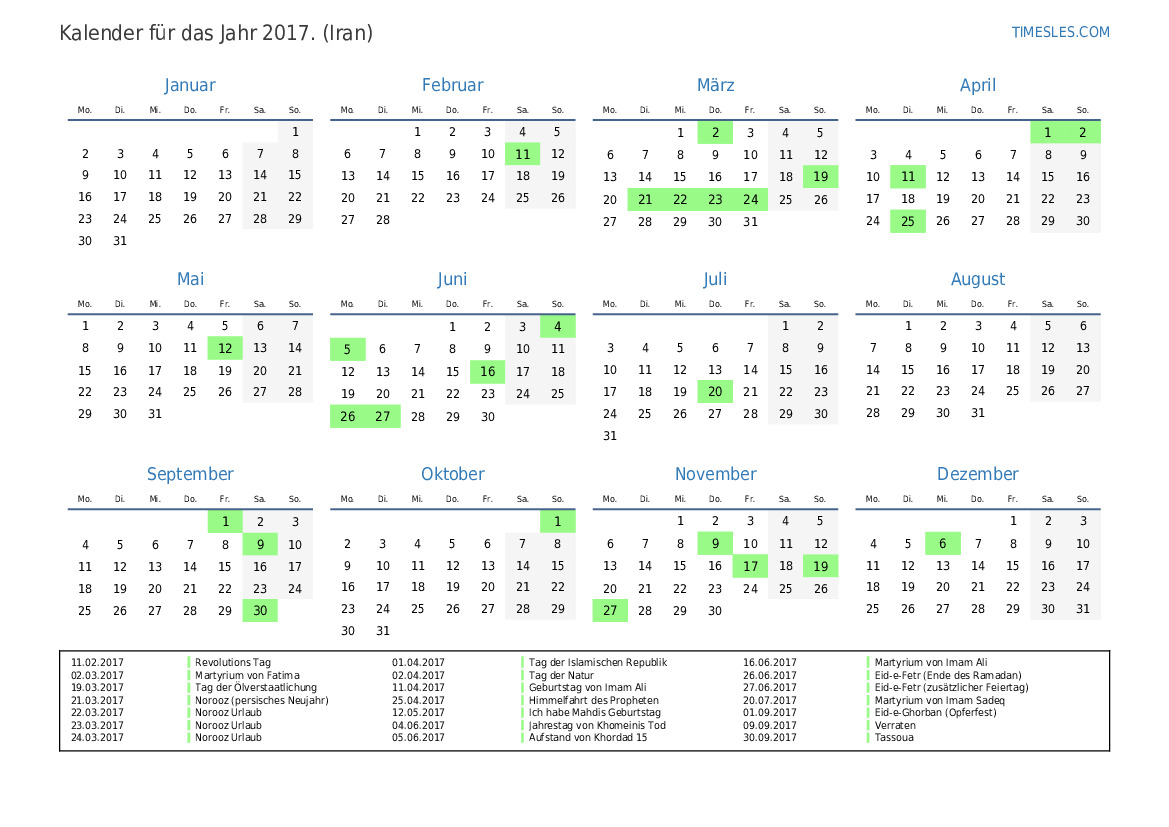 27.06.2017 Eid-e-Fetr (zusätzlicher Feiertag)