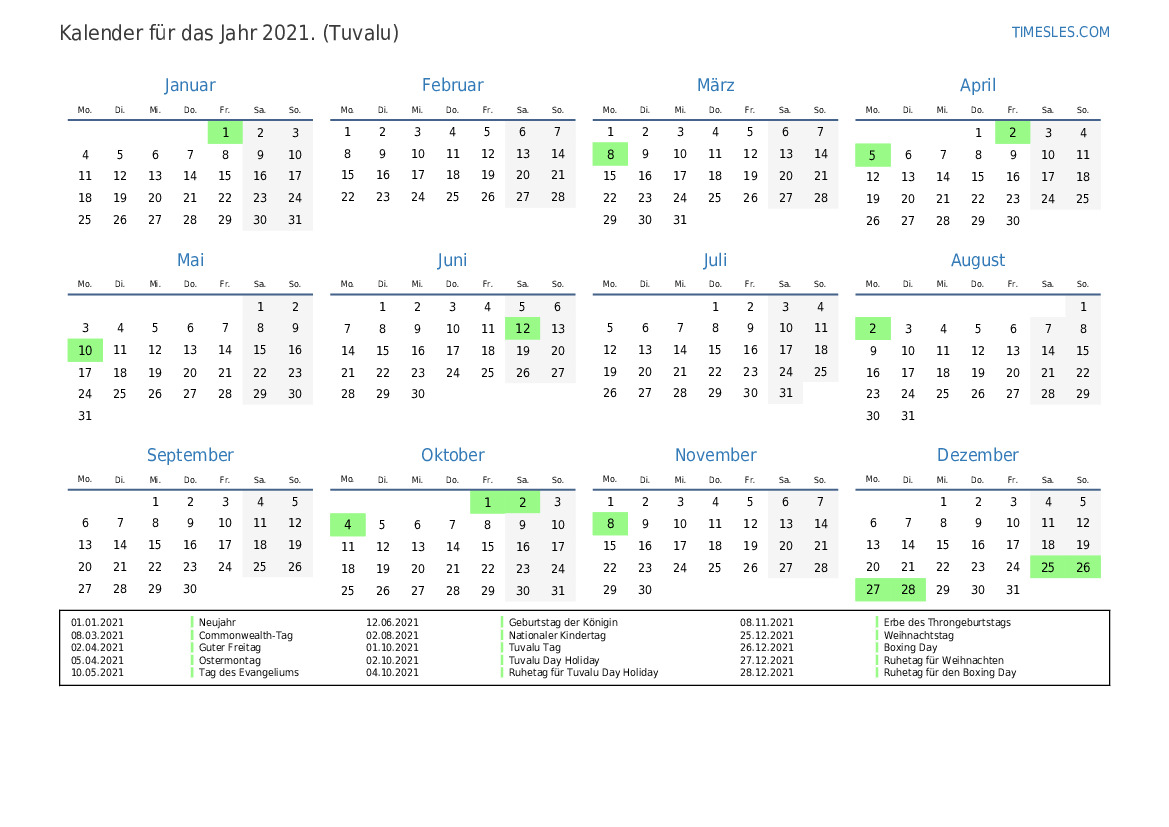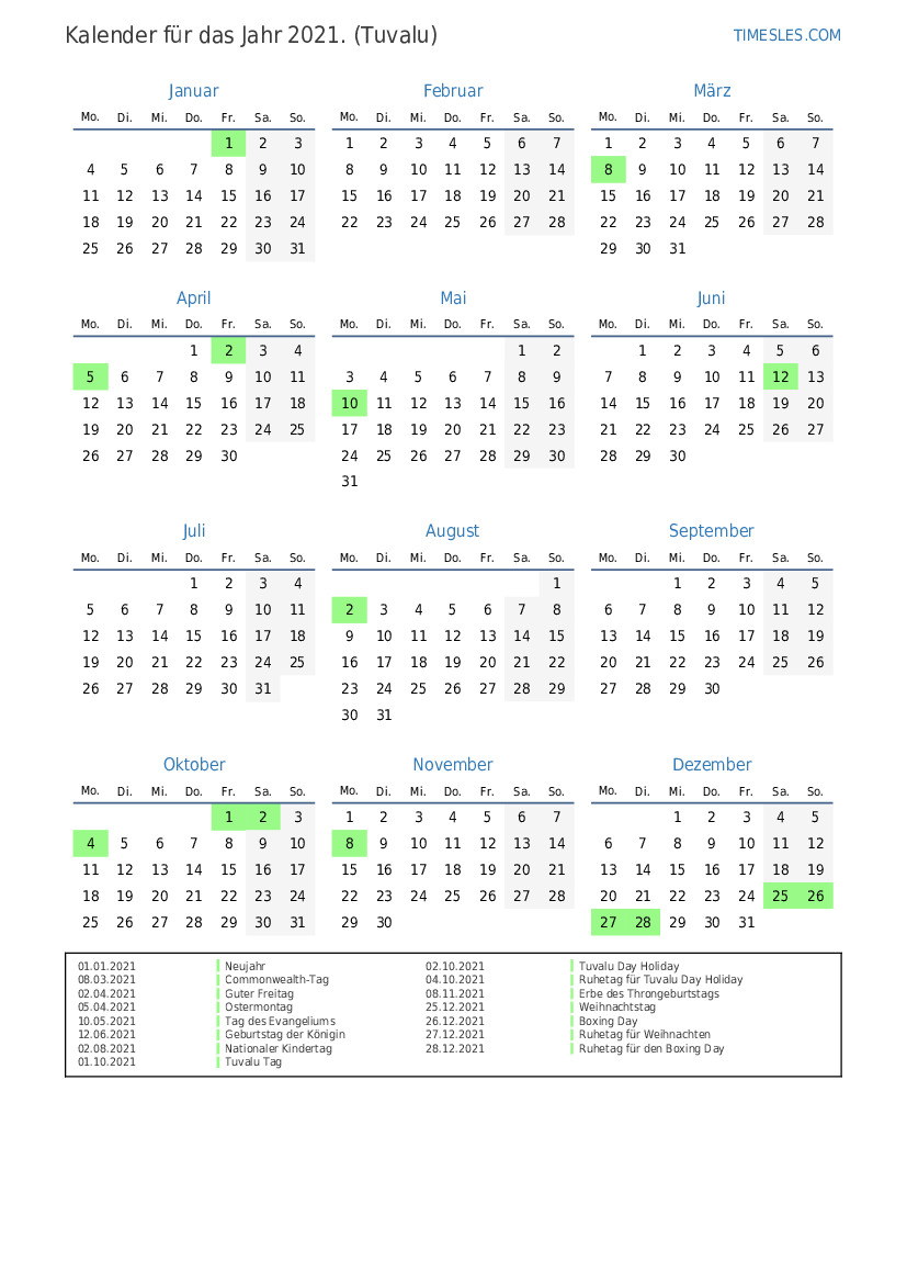 04.10.2021 Ruhetag für Tuvalu Day Holiday