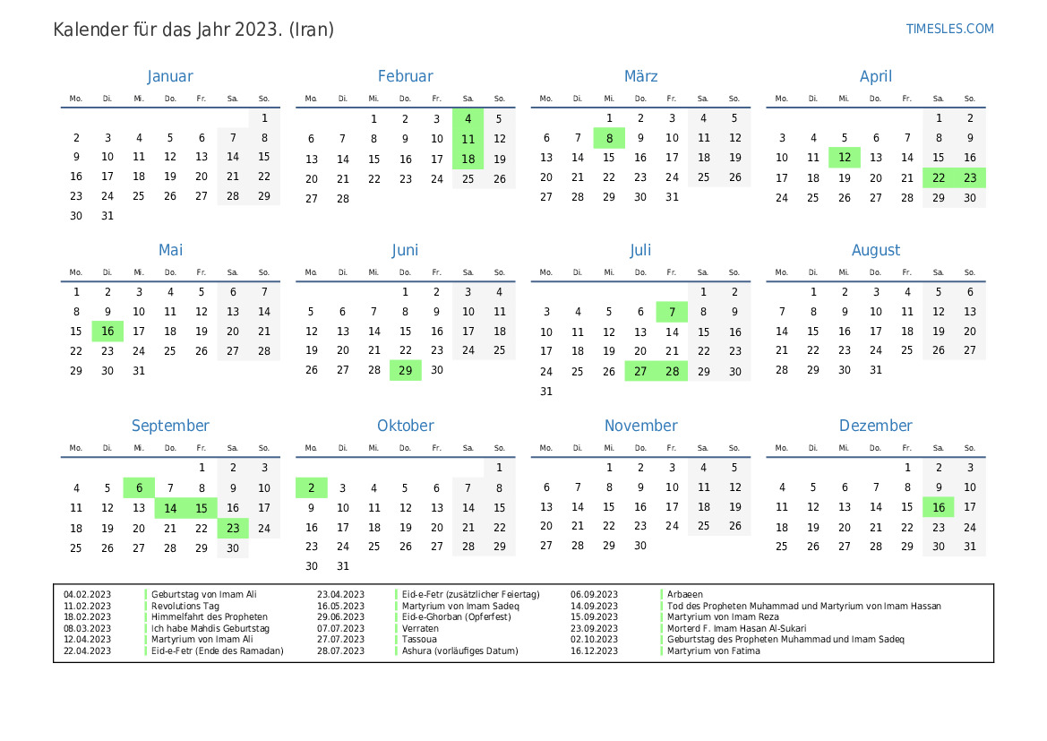 23.04.2023 Eid-e-Fetr (zusätzlicher Feiertag)