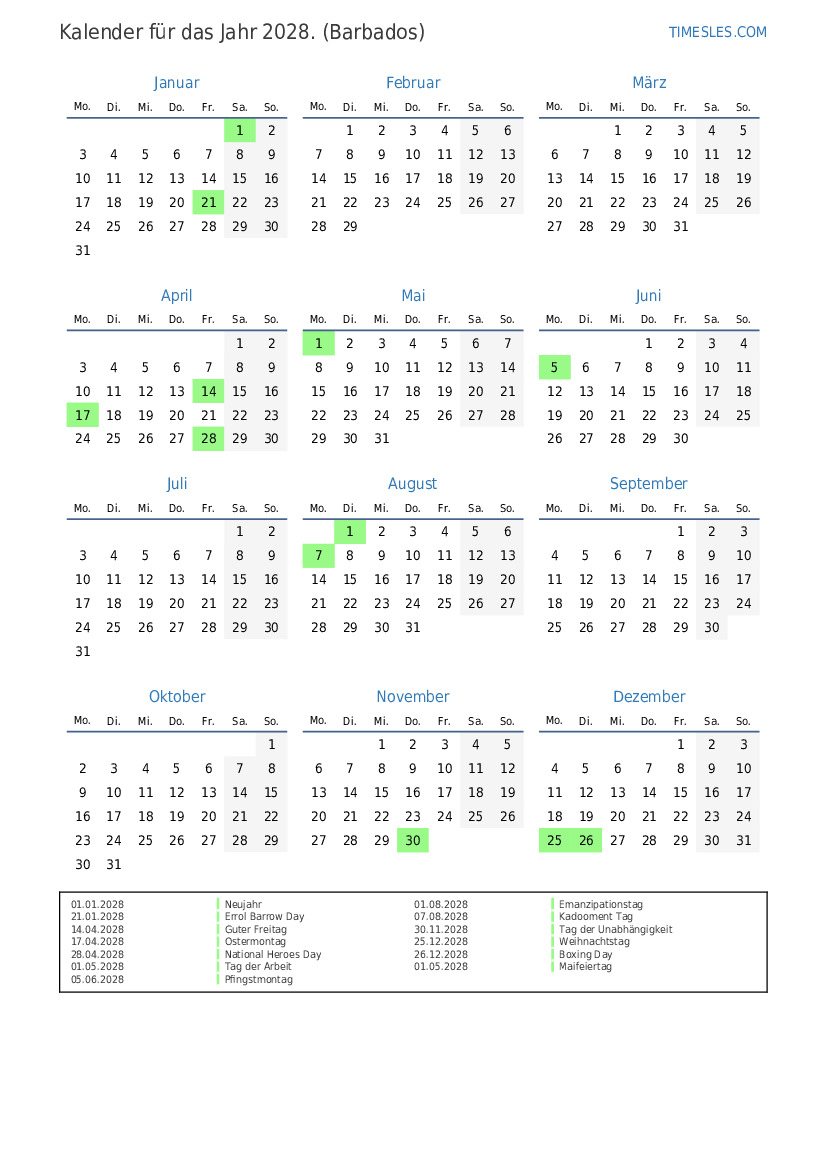 21.01.2028 Errol Barrow Day