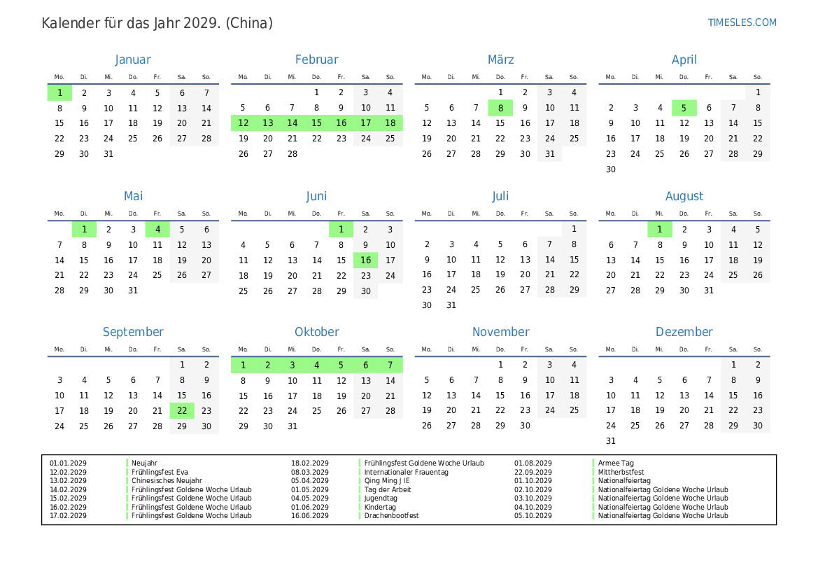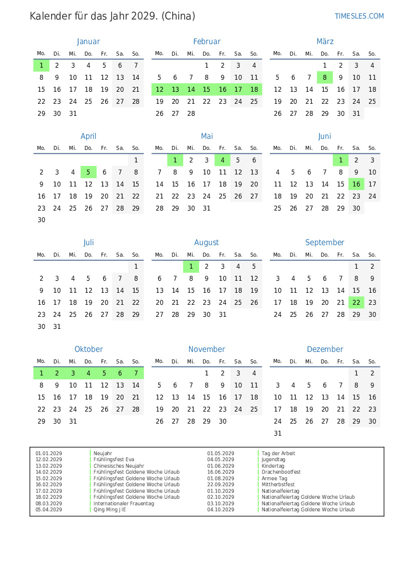 14.02.2029 Frühlingsfest Goldene Woche Urlaub