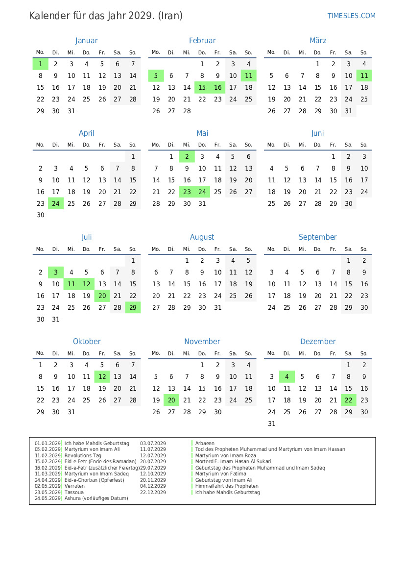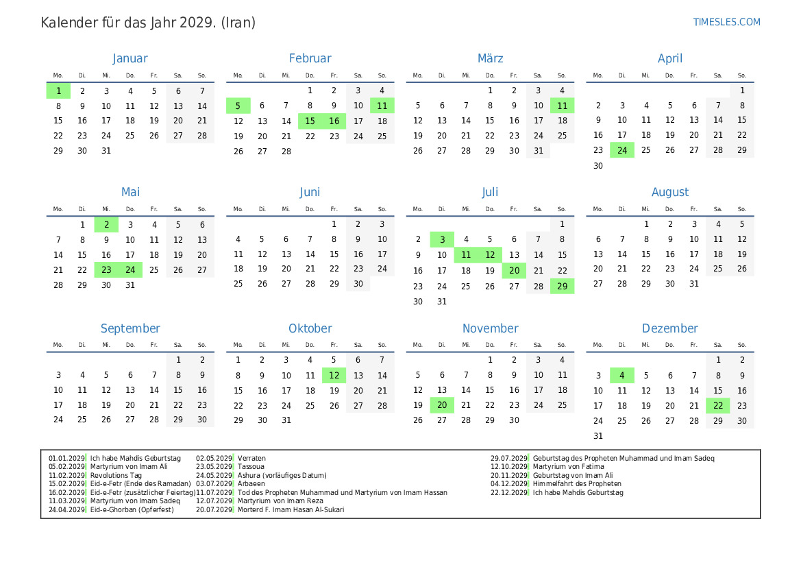 16.02.2029 Eid-e-Fetr (zusätzlicher Feiertag)