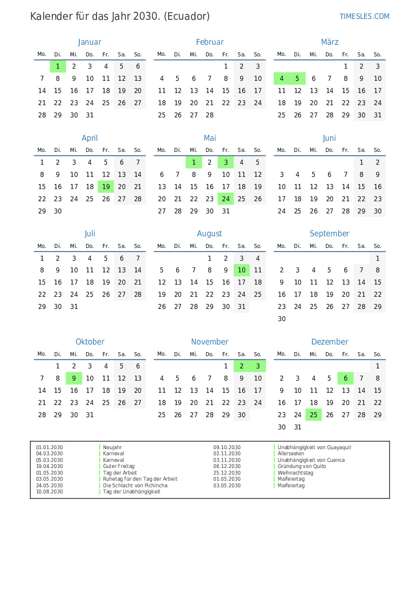 10.08.2030 Tag der Unabhängigkeit