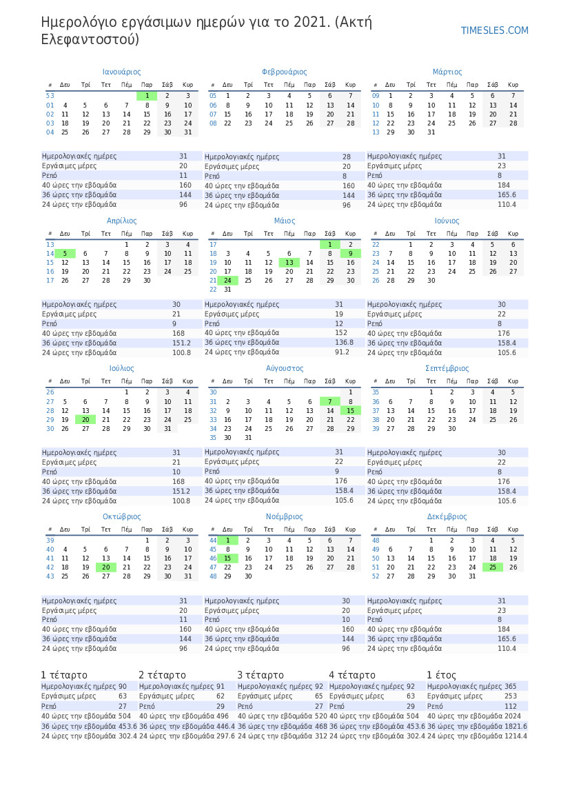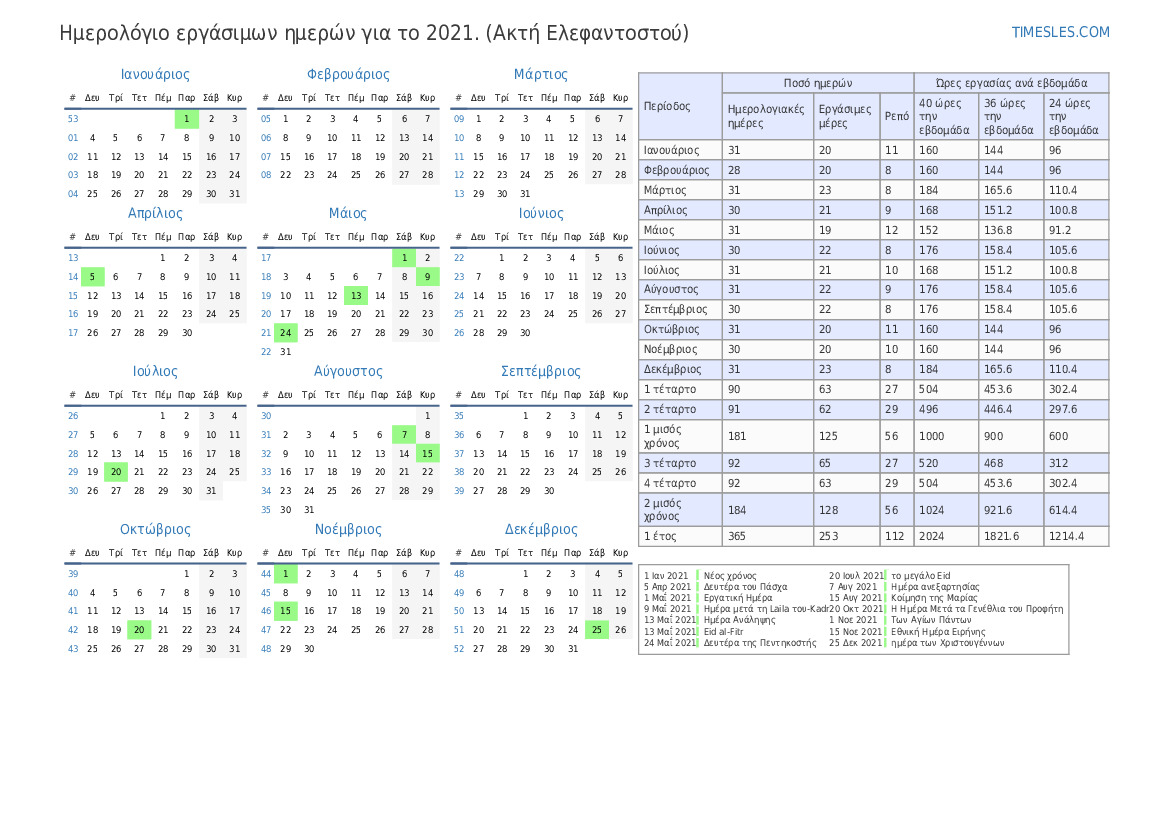 Ημερολόγιο εργάσιμων ημερών