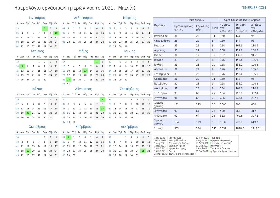 Ημερολόγιο εργάσιμων ημερών με αργίες και σαββατοκύριακα για το 2 τρίμηνο του 2021 για τον Μπενίν