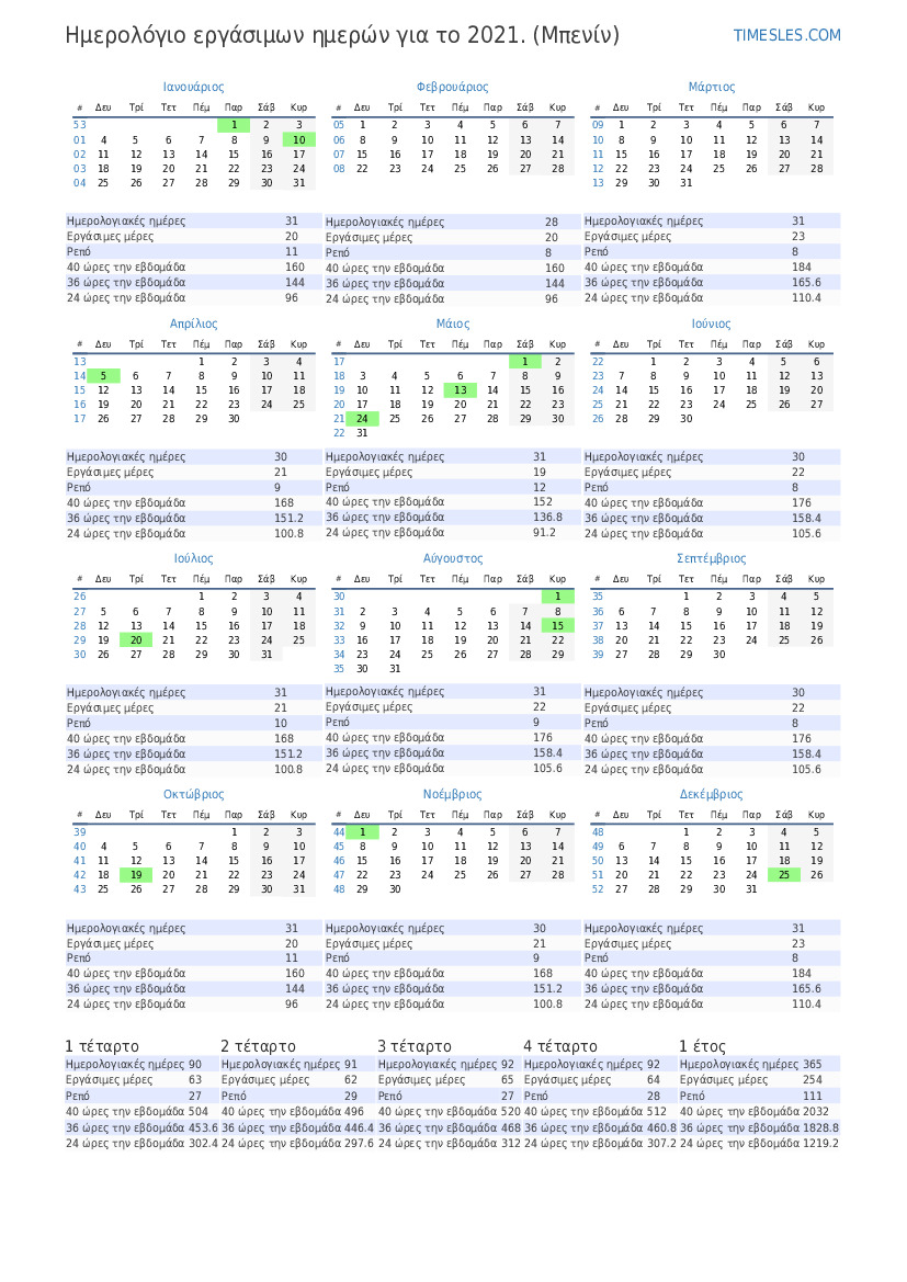 Ημερολόγιο επιχειρηματικού τοπίου για το έτος