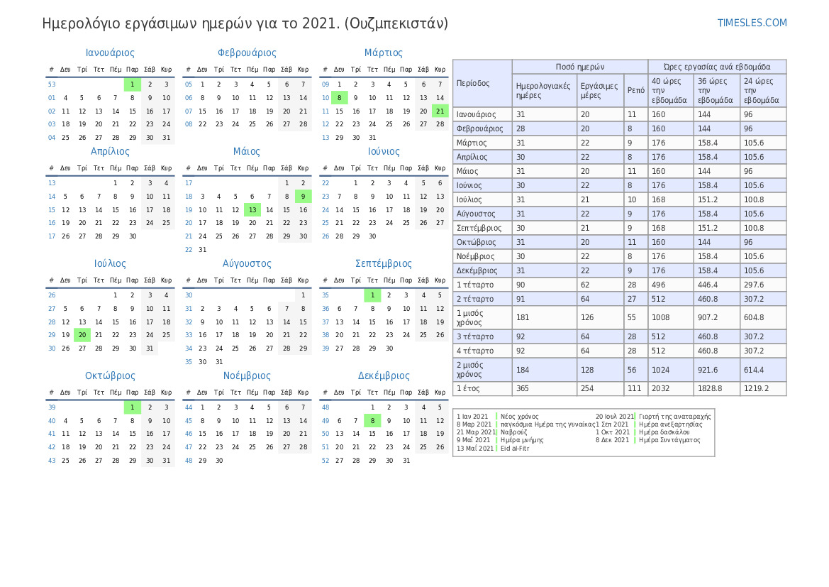 | Εργάσιμες μέρες | 20 |