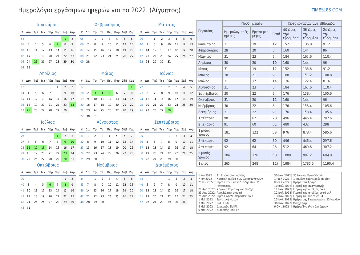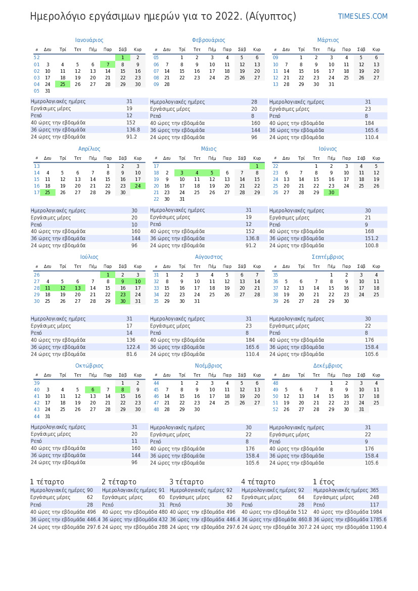 | 24 ώρες την εβδομάδα | 1190.4 |