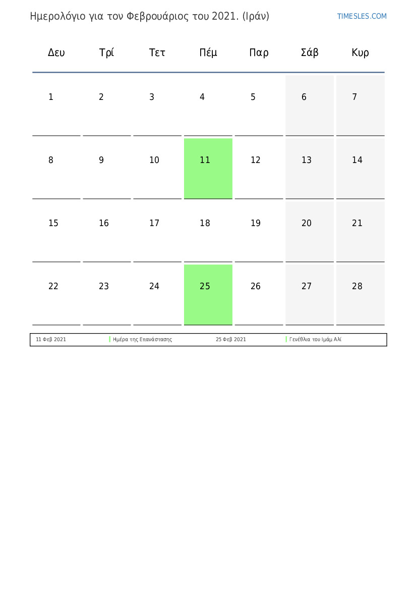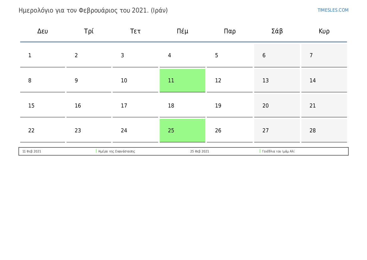 Ημερολόγιο Φεβρουάριος 2021 για το Ιράν