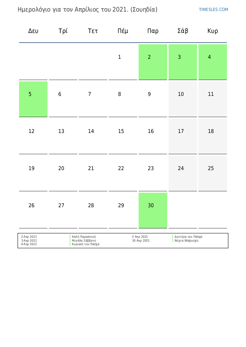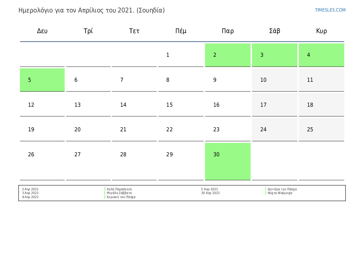 Ημερολόγιο Απρίλιος 2021 για τη Σουηδία