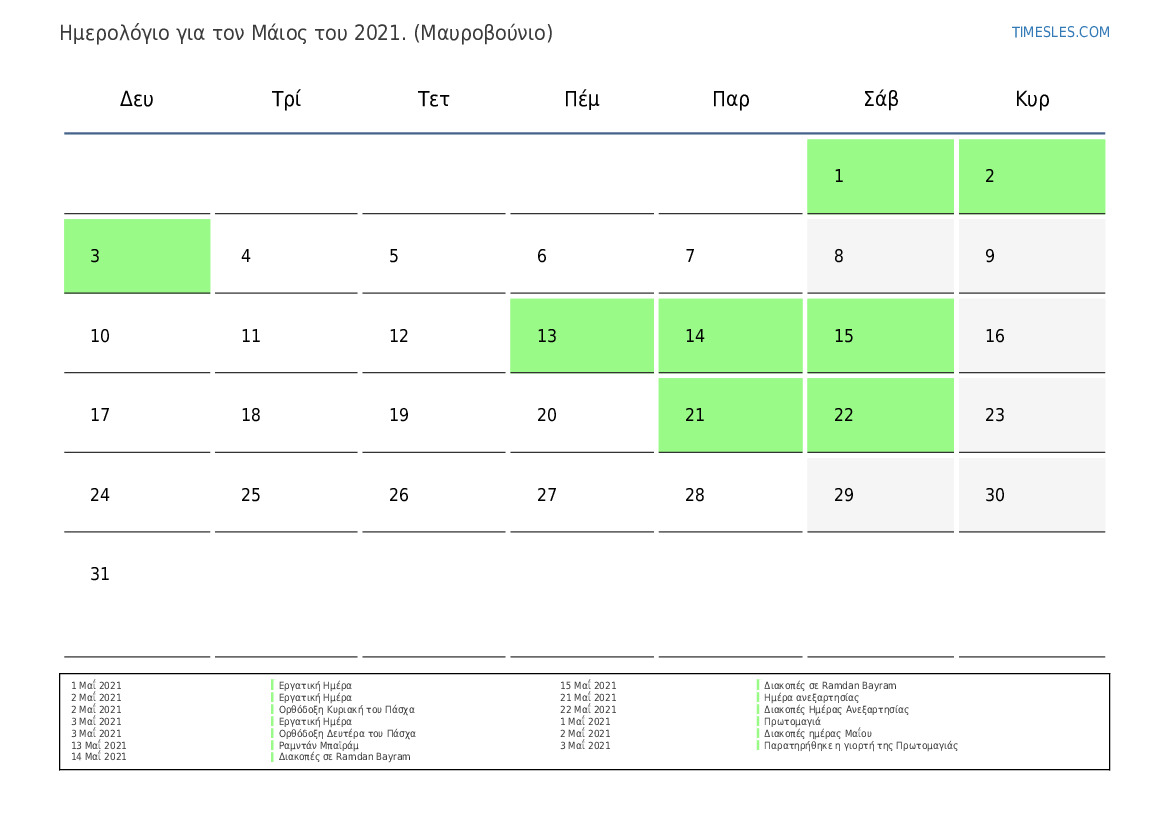 2 Μαΐ 2021 Διακοπές ημέρας Μαΐου