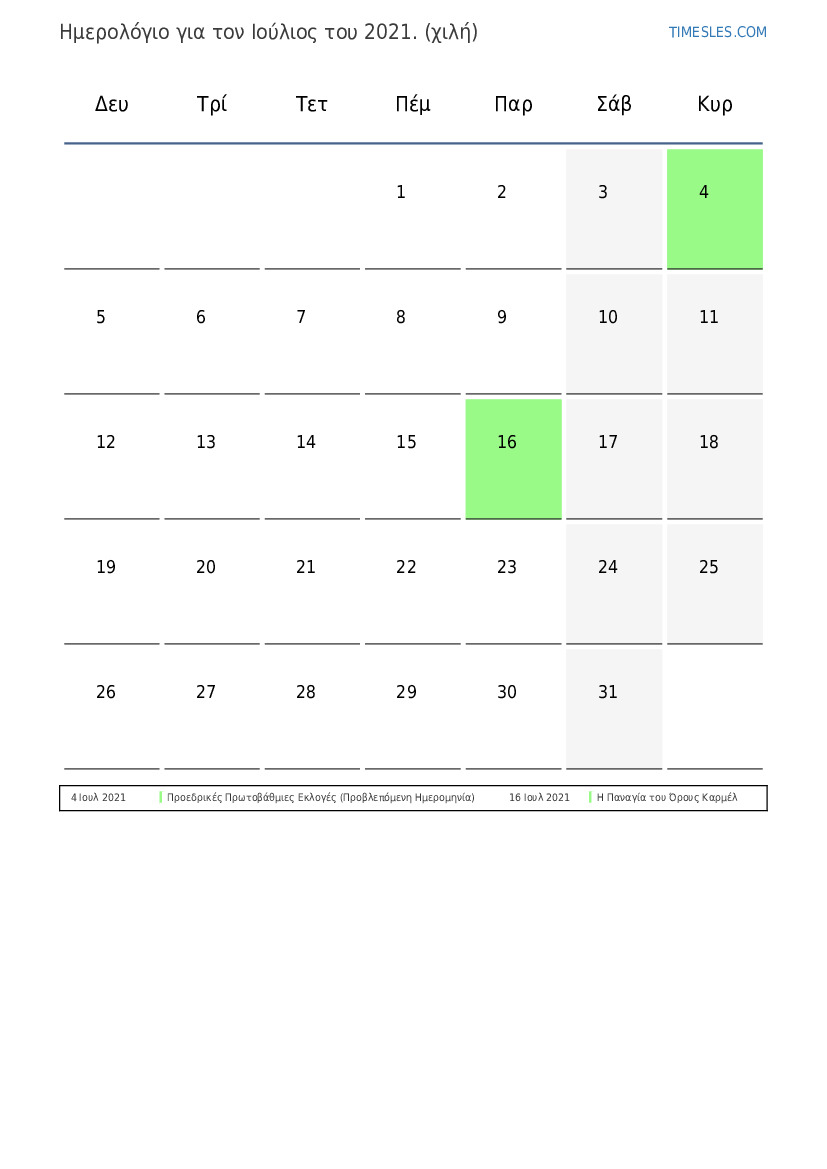 Ημερολόγιο Ιούλιος 2021 για τη Χιλή
