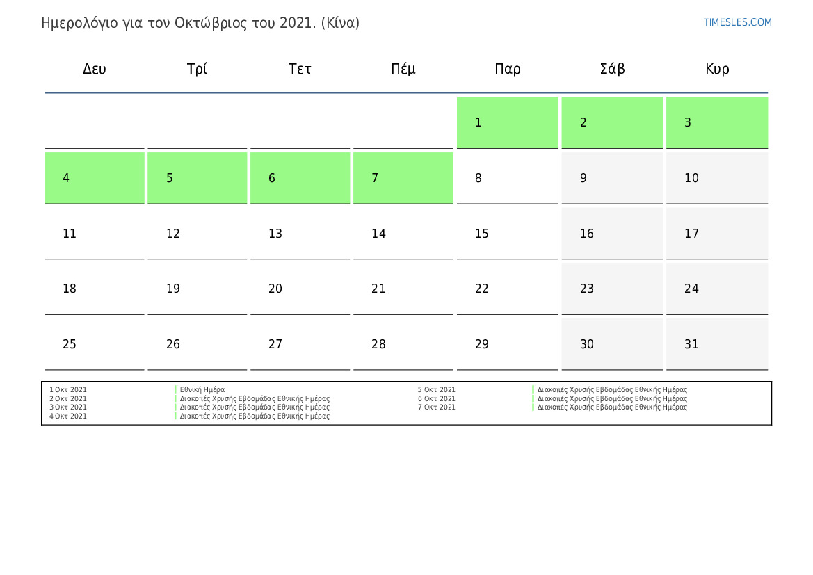 5 Οκτ 2021 Διακοπές Χρυσής Εβδομάδας Εθνικής Ημέρας