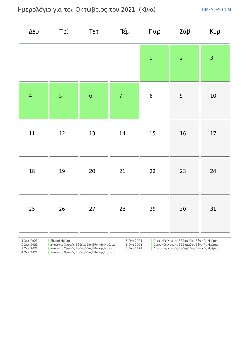 3 Οκτ 2021 Διακοπές Χρυσής Εβδομάδας Εθνικής Ημέρας