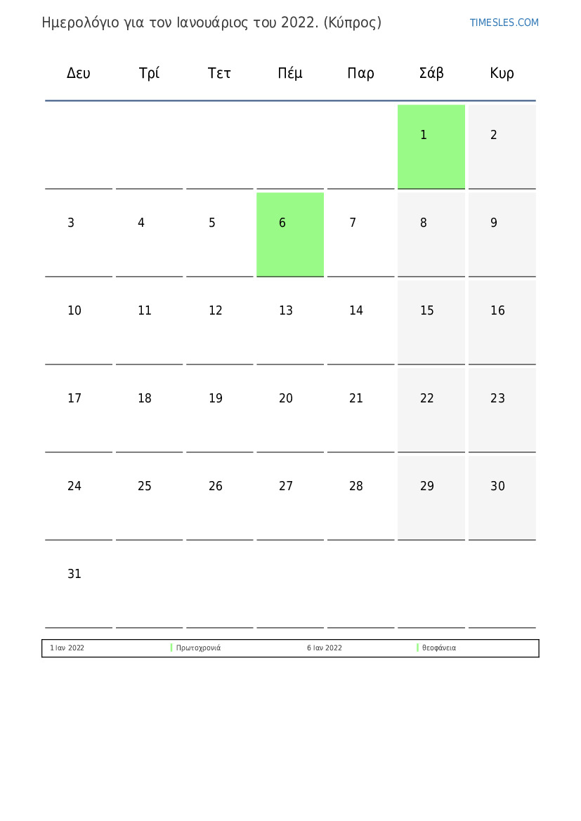 Ημερολόγιο Ιανουάριος 2022 για την Κύπρο