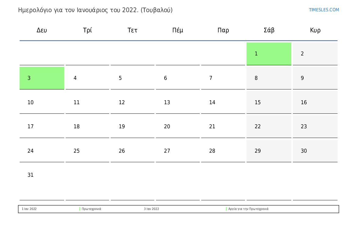 3 Ιαν 2022 Αργία για την Πρωτοχρονιά