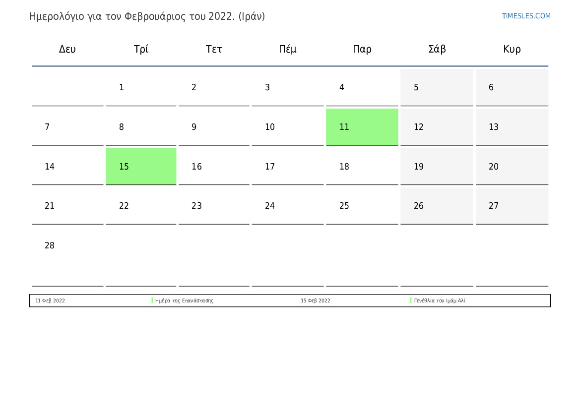 Ημερολόγιο Φεβρουάριος 2022 για το Ιράν