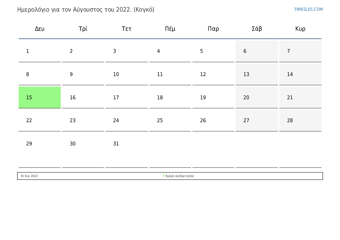 Ημερολόγιο τοπίου με διακοπές για ένα μήνα