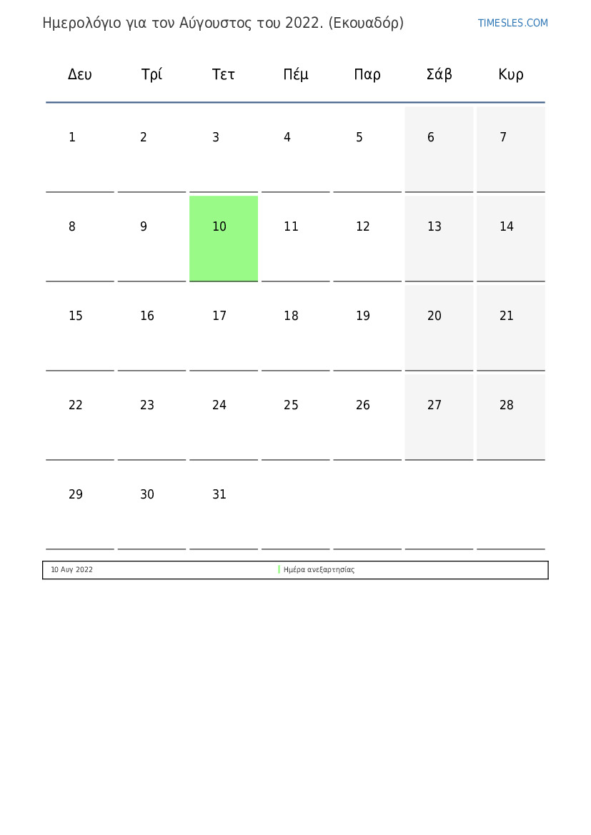 10 Αυγ 2022 Ημέρα ανεξαρτησίας
