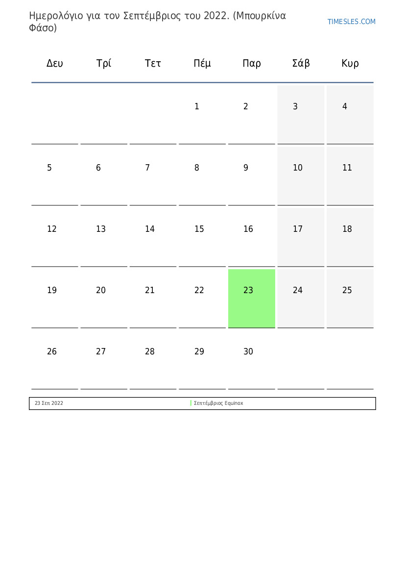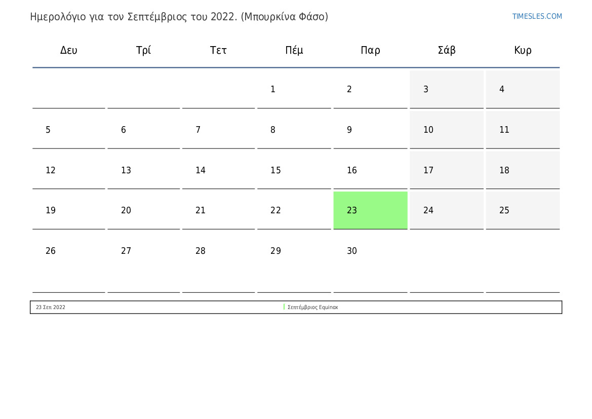 Ημερολόγιο Σεπτέμβριος 2022 για την Μπουρκίνα Φάσο