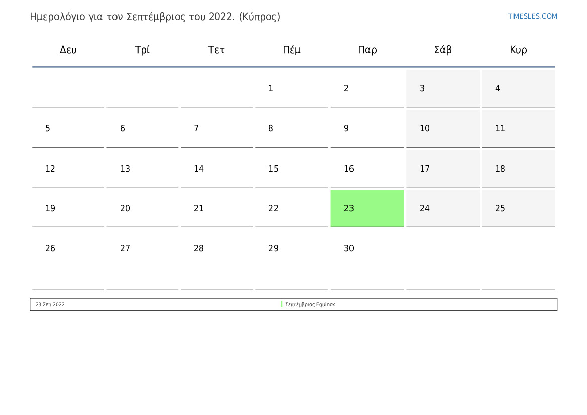Ημερολόγιο Σεπτέμβριος 2022 για την Κύπρο