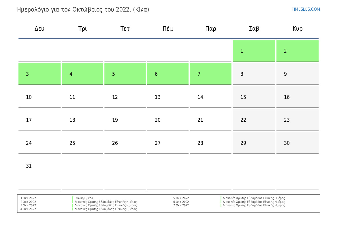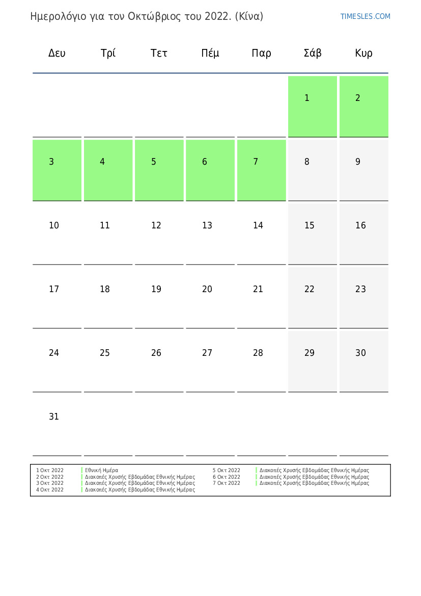 2 Οκτ 2022 Διακοπές Χρυσής Εβδομάδας Εθνικής Ημέρας