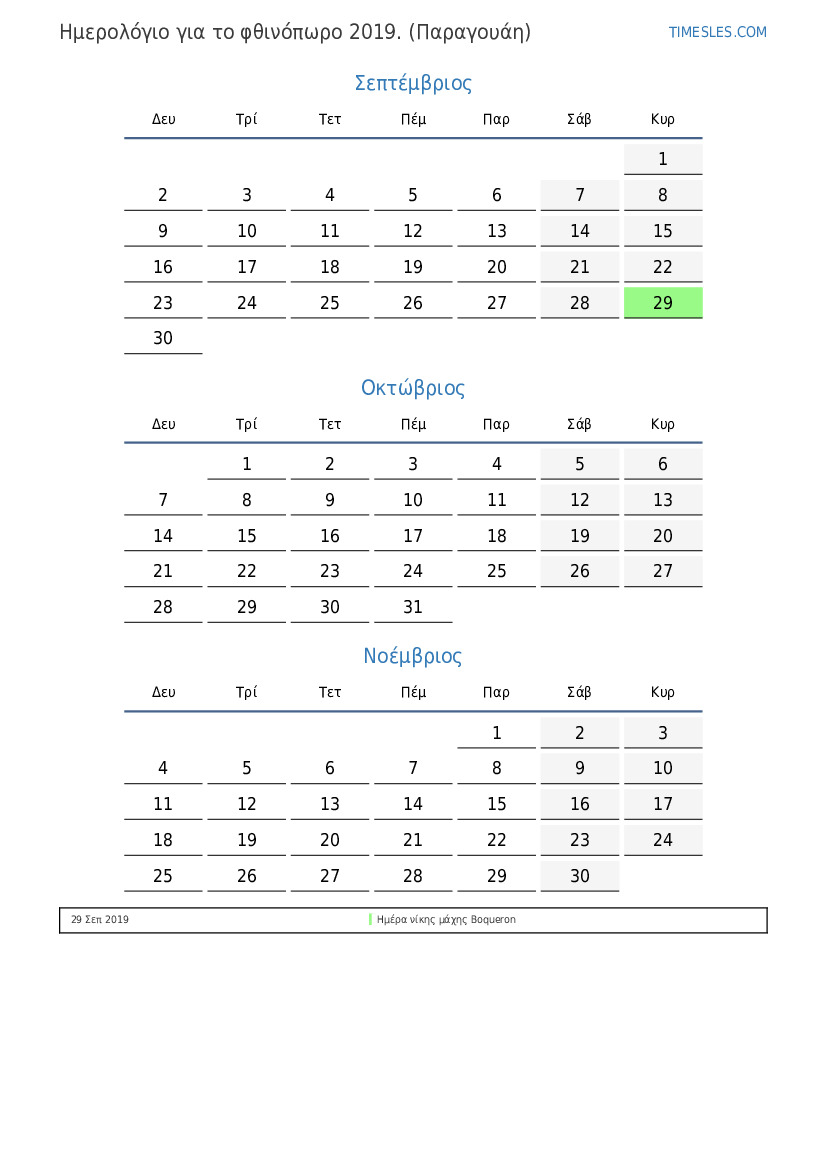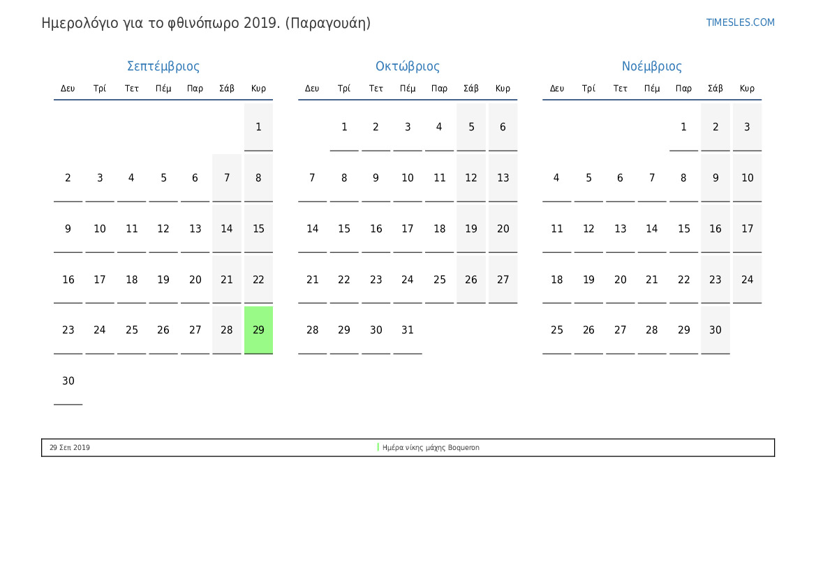 Ημερολόγιο για το φθινόπωρο 2019 για την Παραγουάη