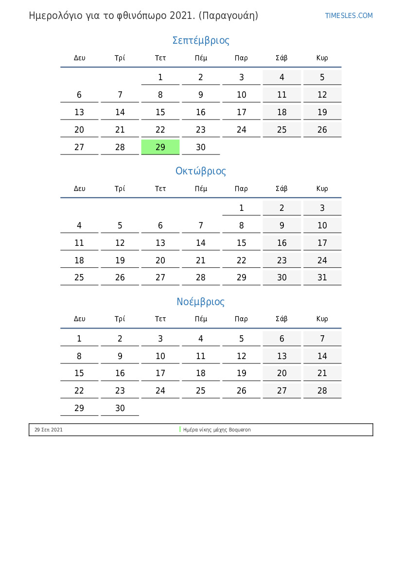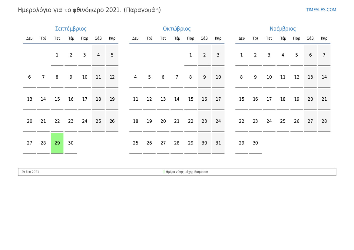 Ημερολόγιο για το φθινόπωρο 2021 για την Παραγουάη