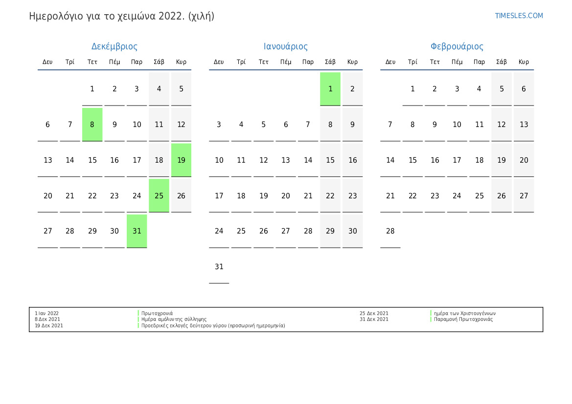ημερολόγιο τοπίου για το έτος κατά εποχές με διακοπές
