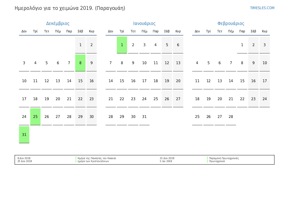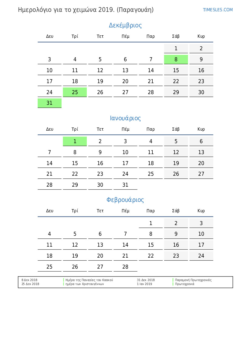 Ημερολόγιο για την άνοιξη 2019 για την Παραγουάη